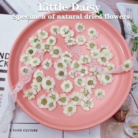 Petite marguerite pressée séchée en lot de 24 pièces, idéale pour bijoux, nail art, coque de téléphone, signets et créations artisanales. De vraies fleurs naturelles pour des réalisations délicates.
